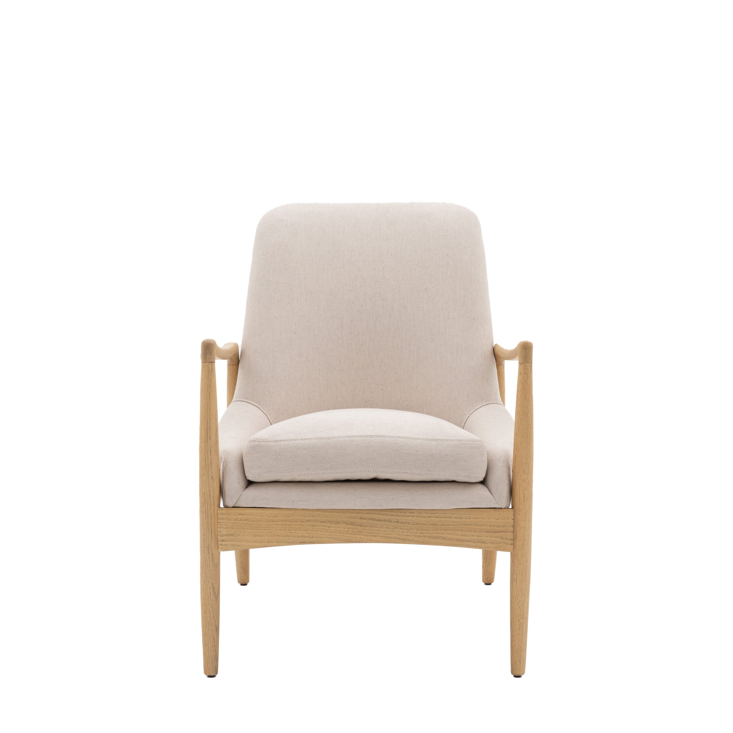 Offering an contemporary twist on mid-Century style, this beautiful chair will suit a wide range of interiors. The oak frame with its natural weathered finish is perfectly complementd by the natural linen coloured fabric. The padded back and seat cushion adds extra comfort to the chair.