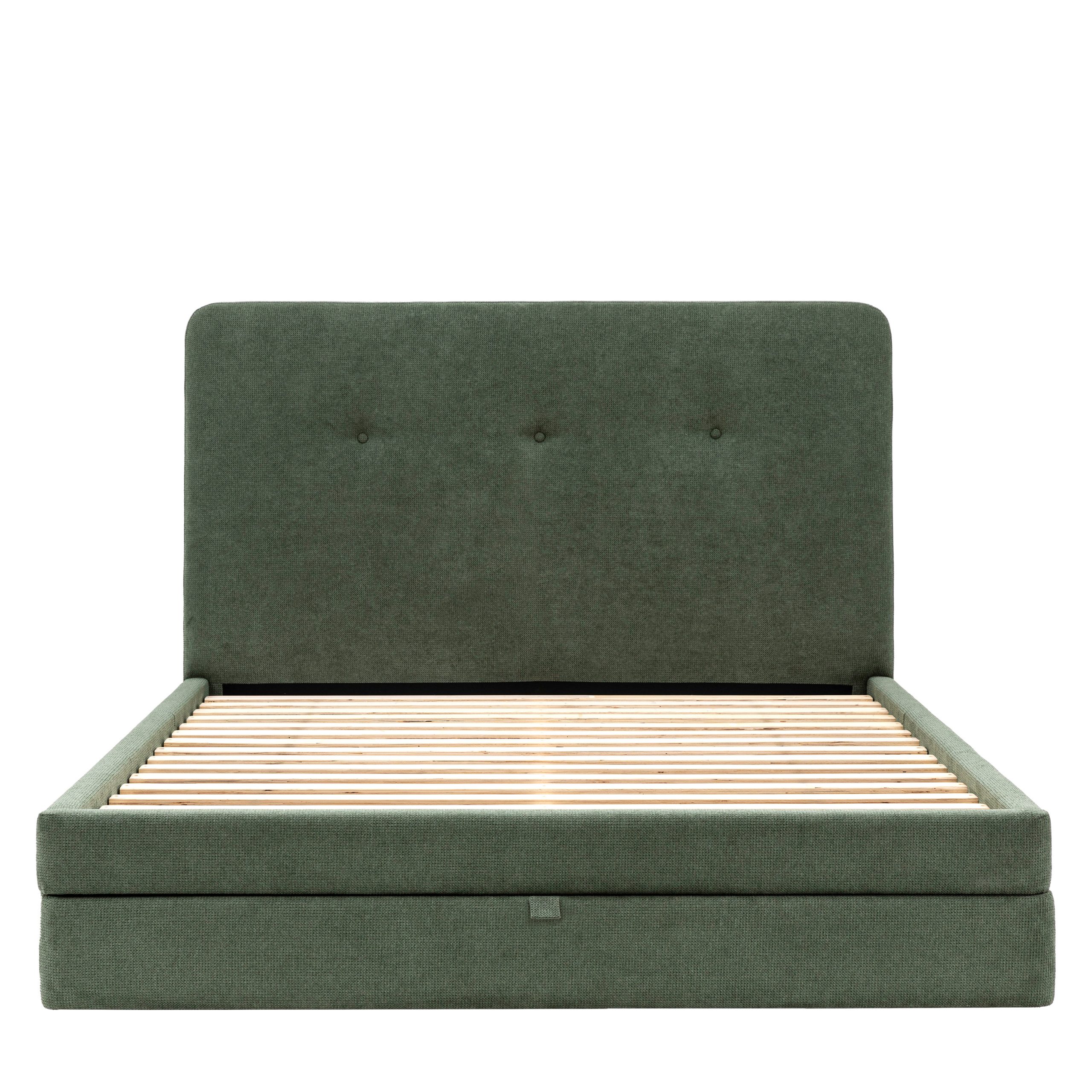 With its simple classy design and lovely green fabric, this beautiful double bedstead would suit a wide range of interiors. The headboard has softly rounded corners and button detailing to give elegant style, and the base features two drawers to give storage space for added practicality.